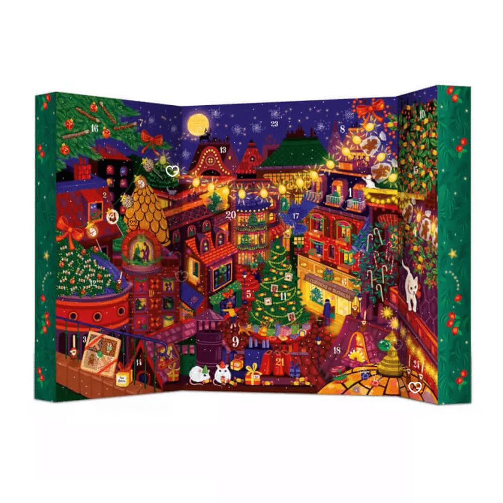 Le cadeau idéal pour faire patienter les petits gourmands tout le mois de décembre, jusqu’à Noël. Ce calendrier de l’avent chocolat renferme de délicieuses surprises chocolatées, mais aussi des céréales enrobées de chocolat et sucre pétillant, des truffes fantaisie ou même des petits pots de pâte à tartiner