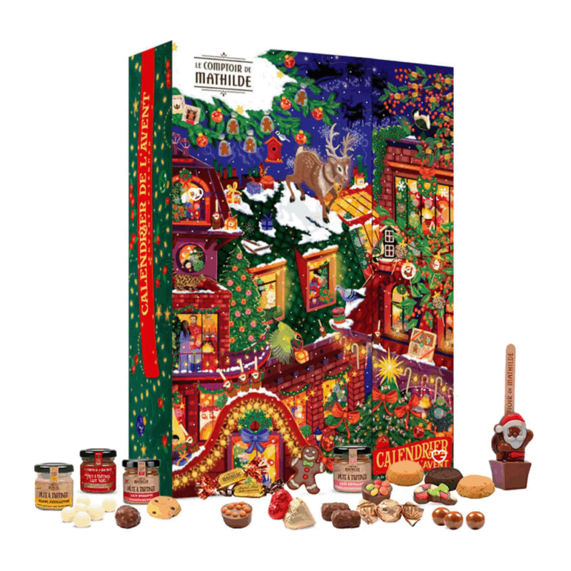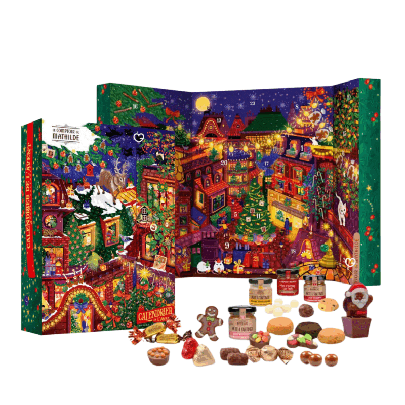 Le calendrier de l’avent Le Comptoir de Mathilde s’adresse à ceux qui aiment la tradition et recherchent une dégustation pleine de caractère. Avec ses 24 chocolats ou autres douceurs, il transforme le décompte jusqu’à Noël en un rituel gourmand et convivial.