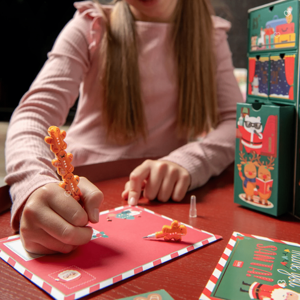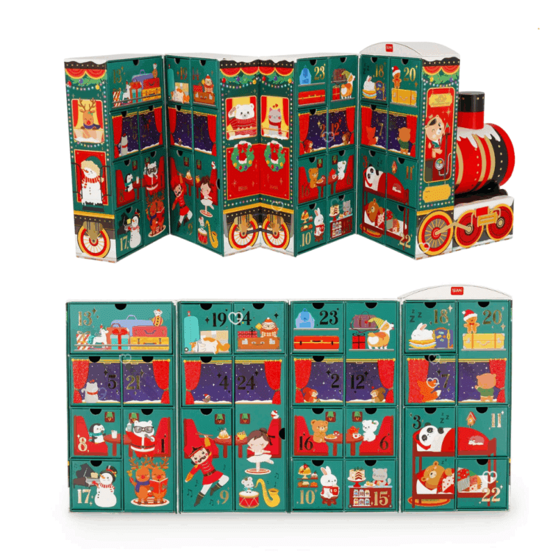 This “Dream Express” box invites boys and girls to wait for Christmas in a fun and original way thanks to its 24 numbered drawers. Inside, you’ll find festive and useful stationery surprises: pencil sharpeners, paper clips, highlighters, pens — including a limited-edition Legami erasable pen.