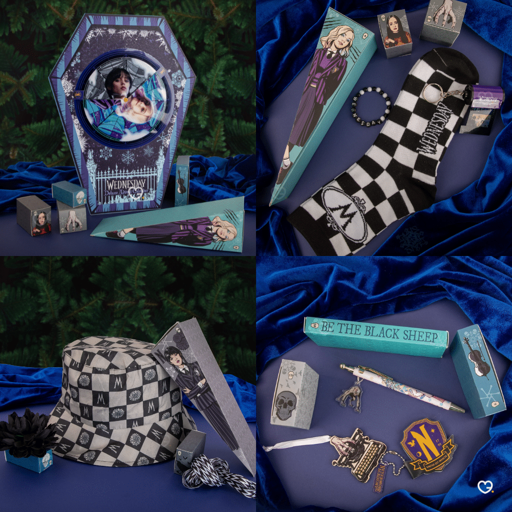 Un coffret parfait pour les passionnés souhaitant vivre décembre dans l’univers étrange, gothique et captivant de Wednesday.