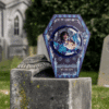 Le packaging en forme de cercueil attire immédiatement le regard et plonge dans le thème.