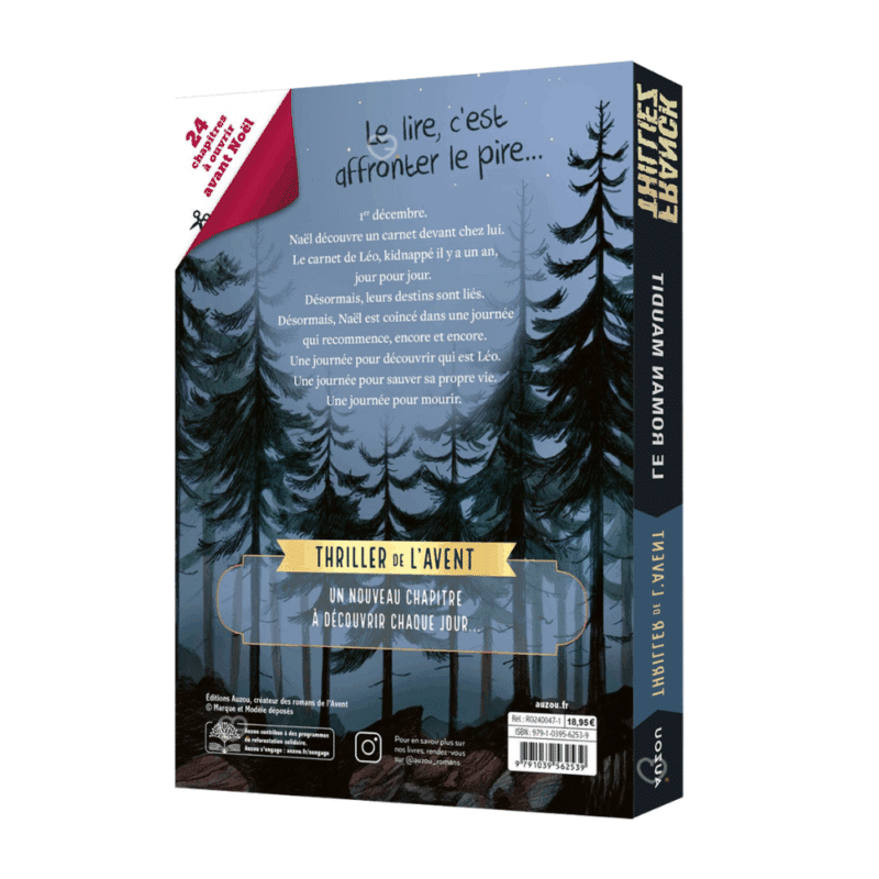 Le calendrier de l’avent Thriller de l’Avent adopte un format clair : un roman découpé en 24 chapitres, à découvrir jusqu’à Noël. Chaque ouverture relance la curiosité et entretient la tension. Les amateurs d’énigmes y trouvent une alternative captivante . Accessible et singulier, il offre une immersion continue dans l’univers Thilliez.