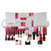 Avec son coffret dégradé blanc / rouge et brillant, le calendrier Armani beauty 2025 contient du rouge à lèvres ; des fards à paupières; du parfum mais aussi des crèmes visages. Au total 8 produits grands formats et 15 miniatures .