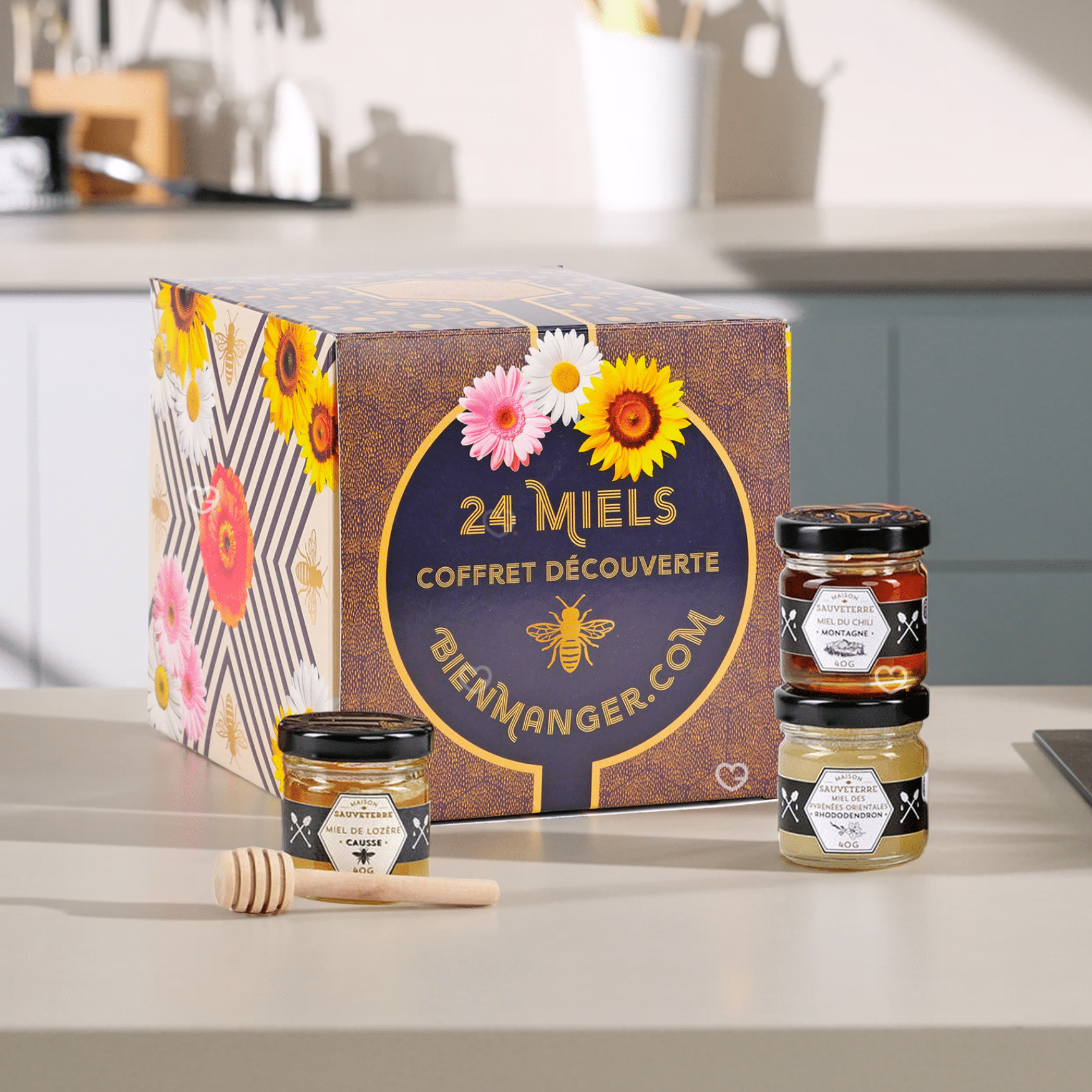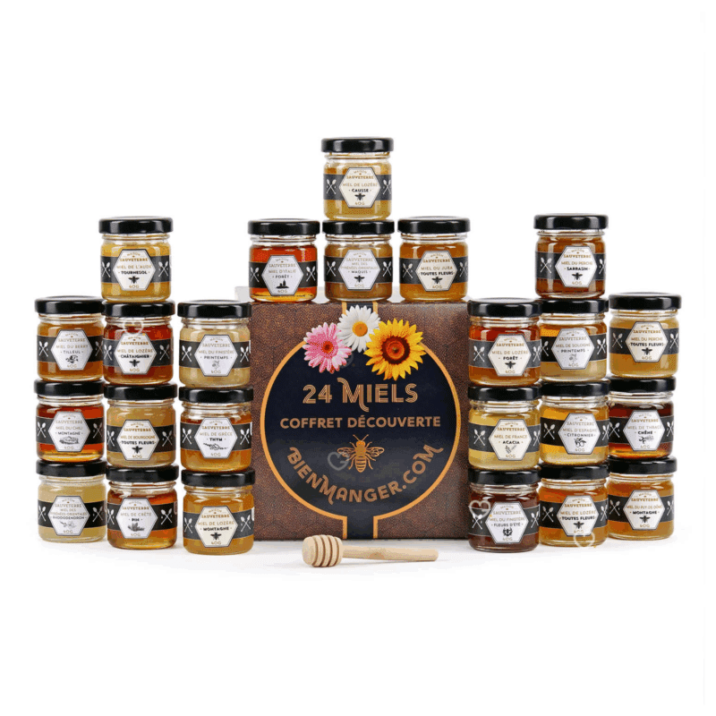 • 24 pots de miel de 40g et une cuillère à miel en bois