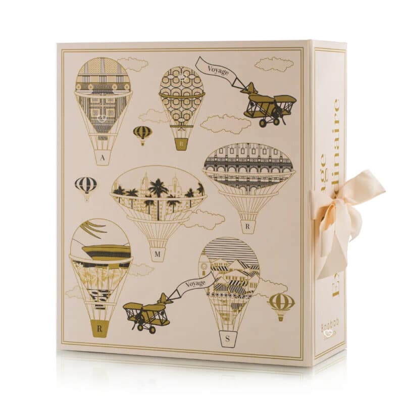 « Le Voyage Extraordinaire » ! C'est le nom du luxueux calendrier de l'Avent Baobab Collection , un coffret design exclusif illustré avec finesse et élégance qui; illustré avec ses montgolfières; rappelle les romans de Jules Verne .