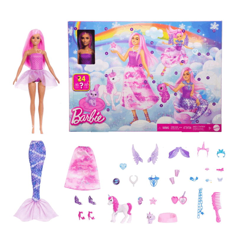 Inspiré de la collection Dreamtopia de Mattel, le nouveau calendrier de l'Avent Barbie Sirène accompagne les enfants tout le mois de décembre dans un univers ludique et féérique.