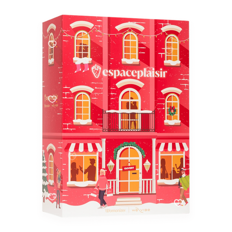 Avec son décor de facade d’appartement-boutique, le calendrier de l’avent espaceplaisir 2025 met à l’honneur l’amour, la sensualité et la sexualité grâce à ses 24 petits bijoux de plaisir.