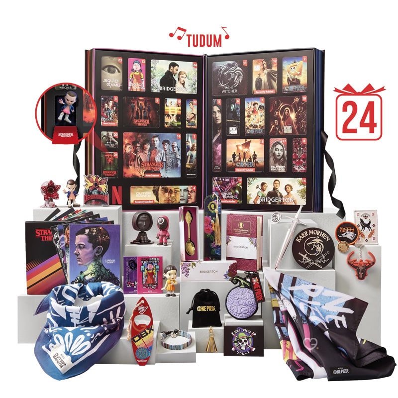 Au travers 24 jours, plongez dans les titres emblématiques tels que Stranger Things , Bridgerton , One Piece , Squid Gam e, Outer Banks, Rebel Moon ou encore The Witcher ! Chaque jour, vous pourrez découvrir un gadget, un accessoire ou encore une figurine à l'image de ces séries.