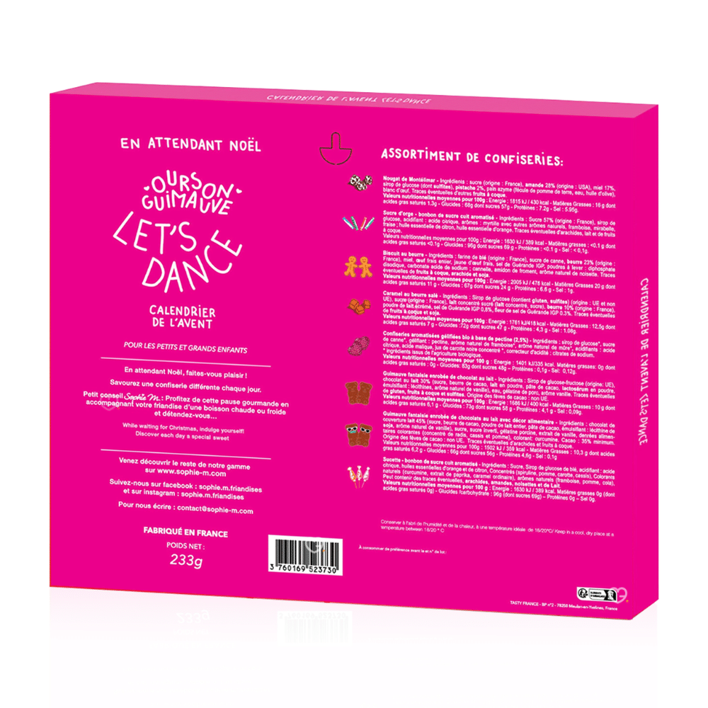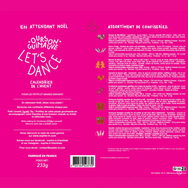 Derrière ses fenêtres illustrées se cachent des friandises issues d’un véritable savoir-faire français. Le coffret dévoile un univers d’oursons givrés et d’ingrédients simples choisis pour leur qualité, tout en célébrant la magie de Noël.