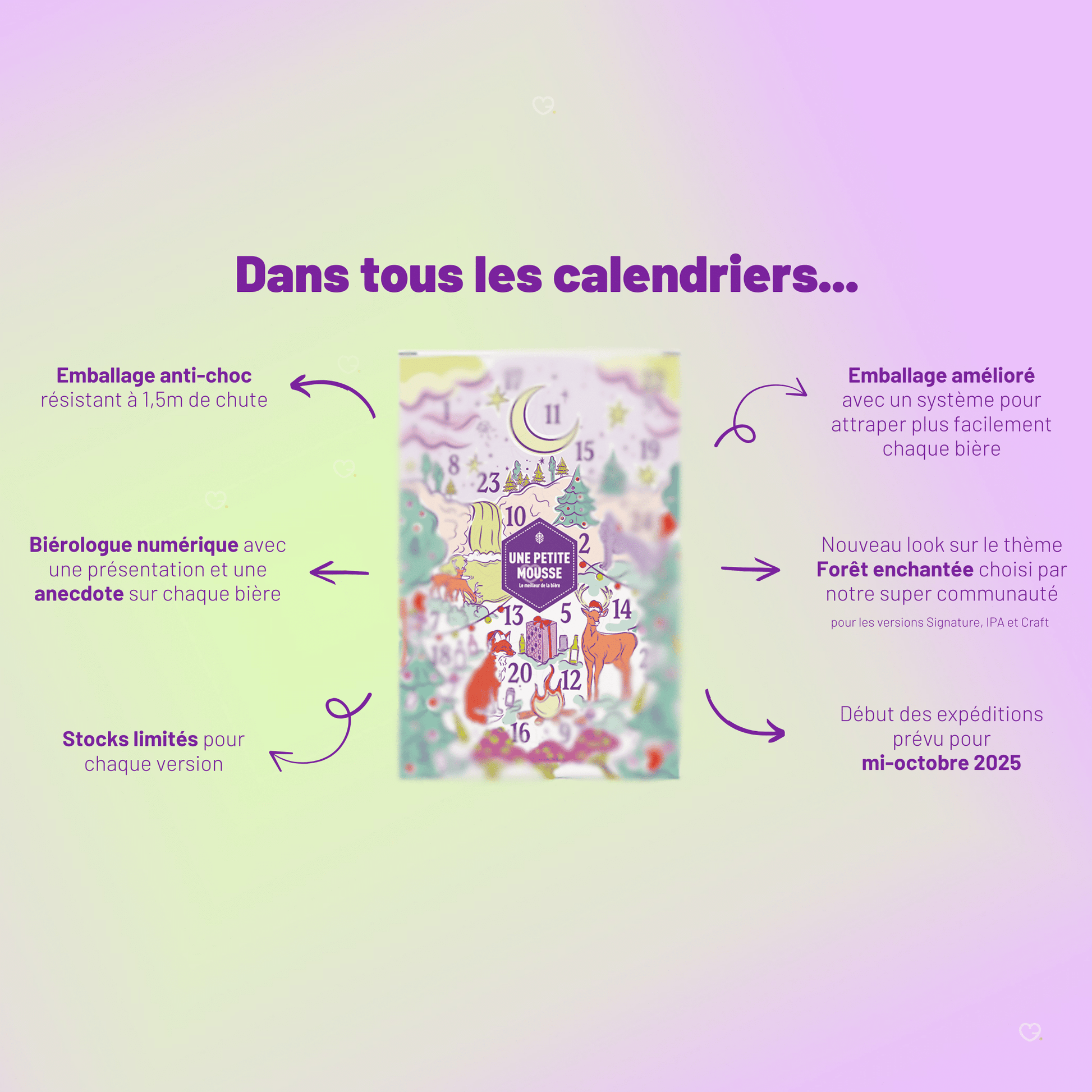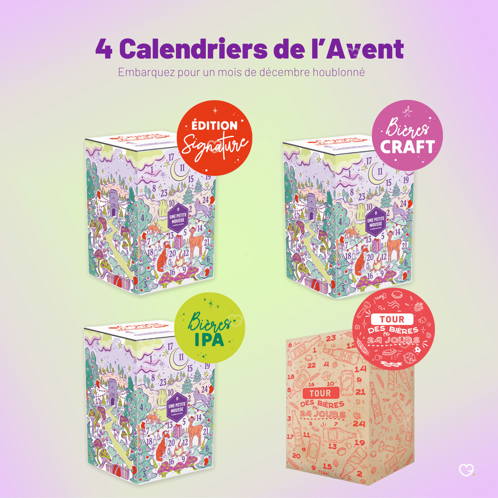 - Calendrier de l'Avent 2025 des meilleures bières : LE calendrier signature, celui que vous connaissez depuis toujours : 24 bières artisanales coups de coeur (79,95€)